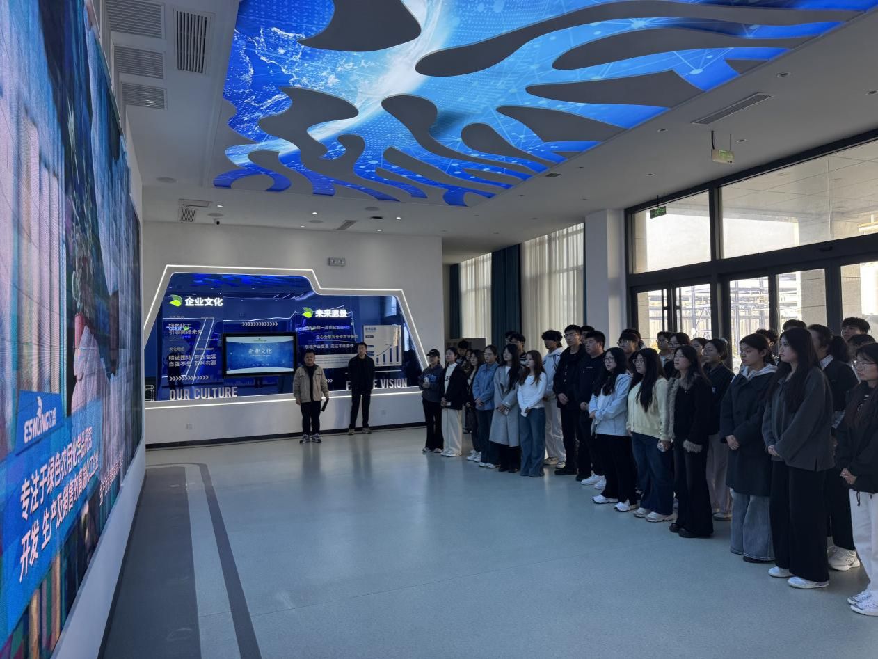 在企业展厅,师生们观看企业形象宣传片,直观感受到山东亿盛实业股份有限公司的发展活力与产业布局。系统了解公司的成长脉络,从初创期的深耕细作,到逐步拓展业务版图,再到如今聚焦绿色发展的产业升级,每一个关键节点都清晰展现出企业的发展韧性,作为主营草铵膦的行业领军企业,其在绿色发展道路上的探索与成就给大家留下深刻印象。