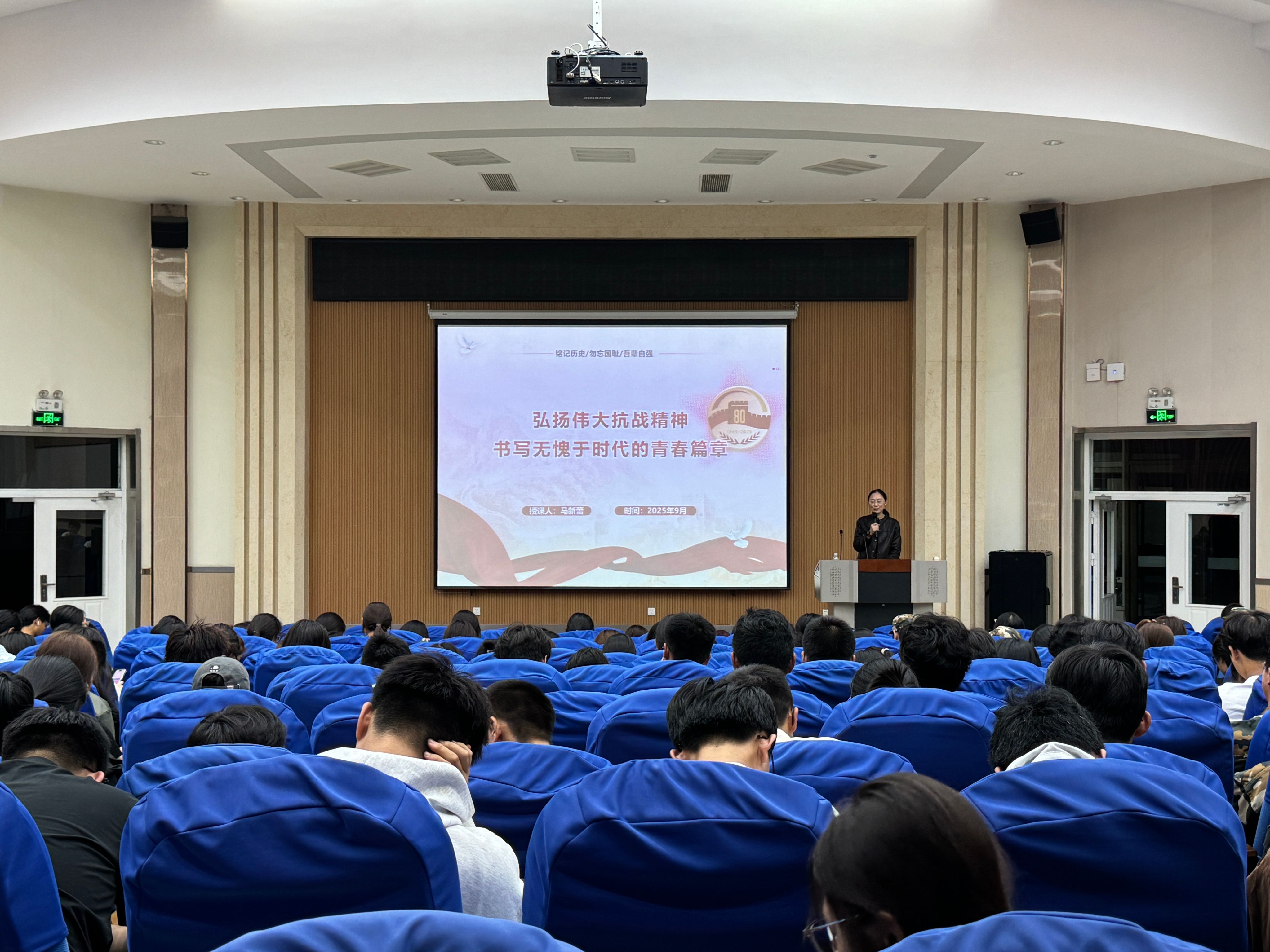 9月24日,化学化工与材料学院2025级新生“开学第一课”在3号楼报告厅举行。学院党委书记马新蕾以“弘扬伟大抗战精神书写无愧于时代的青春篇章”为题为全体2025级新生作了一场关于爱国和青春的主题报告。
