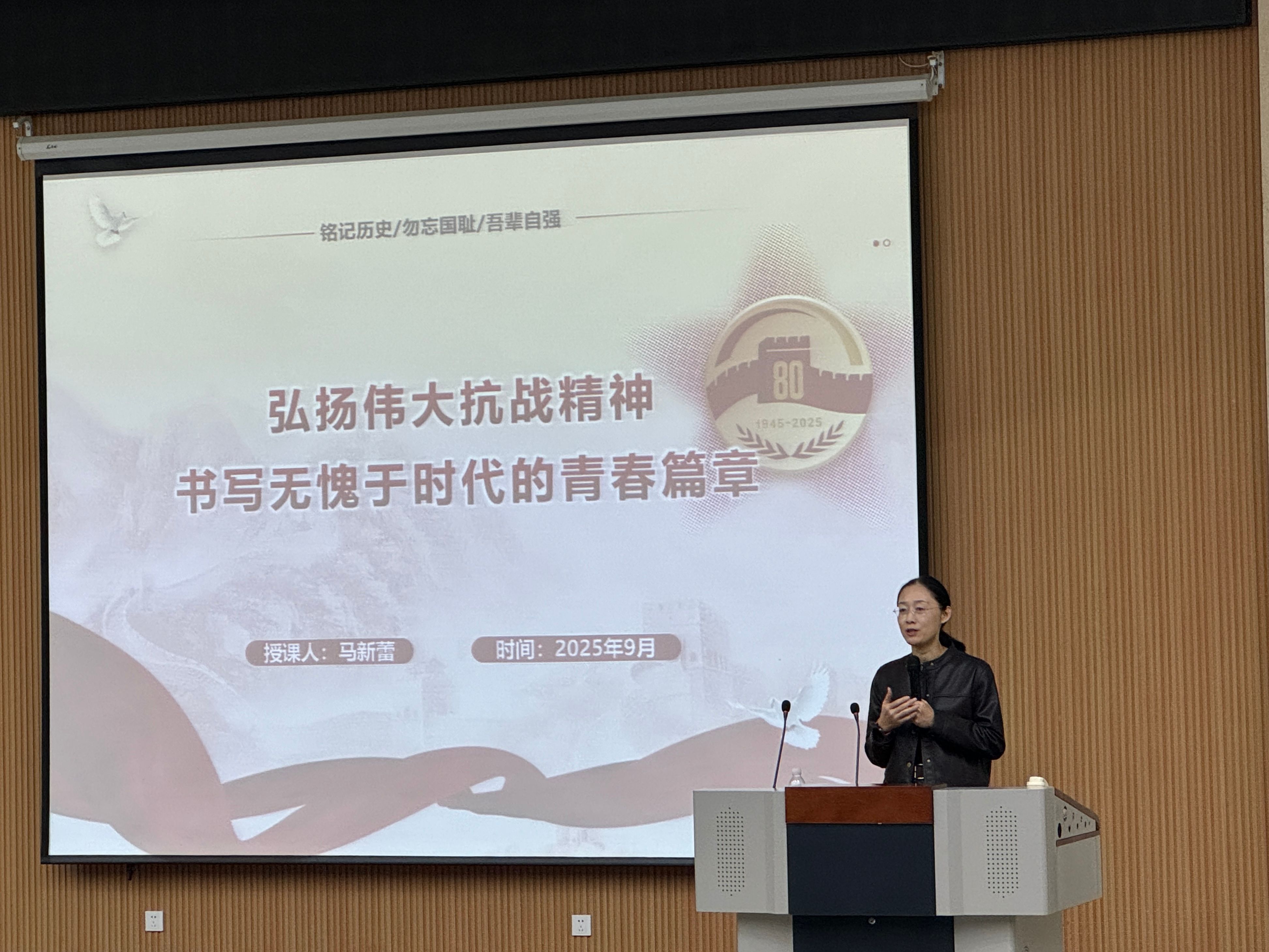 马新蕾紧扣纪念抗战胜利80周年这一重要历史节点,结合同学们关注的“9.3”阅兵,深入阐释了伟大抗战精神的深刻内涵。随后,开学第一课从“我们的时代、我们的大学、青年如何成长成才、从抗战精神中汲取精神力量”四个维度展开。课程阐述在两个大局交汇的时代背景下,党的十八大以来中国在各领域取得的辉煌成就,鼓励新生把握时代机遇,明确人生方向,以勇敢坚定的态度投身学习与实践。课堂还介绍了学校的发展历程、发展成就,人才培养的目标,学业生涯的出口,为新生勾勒出一幅清晰的成长路径图,鼓励大家从伟大抗战精神中,感悟爱国与责任、团结与风险、坚韧与担当。