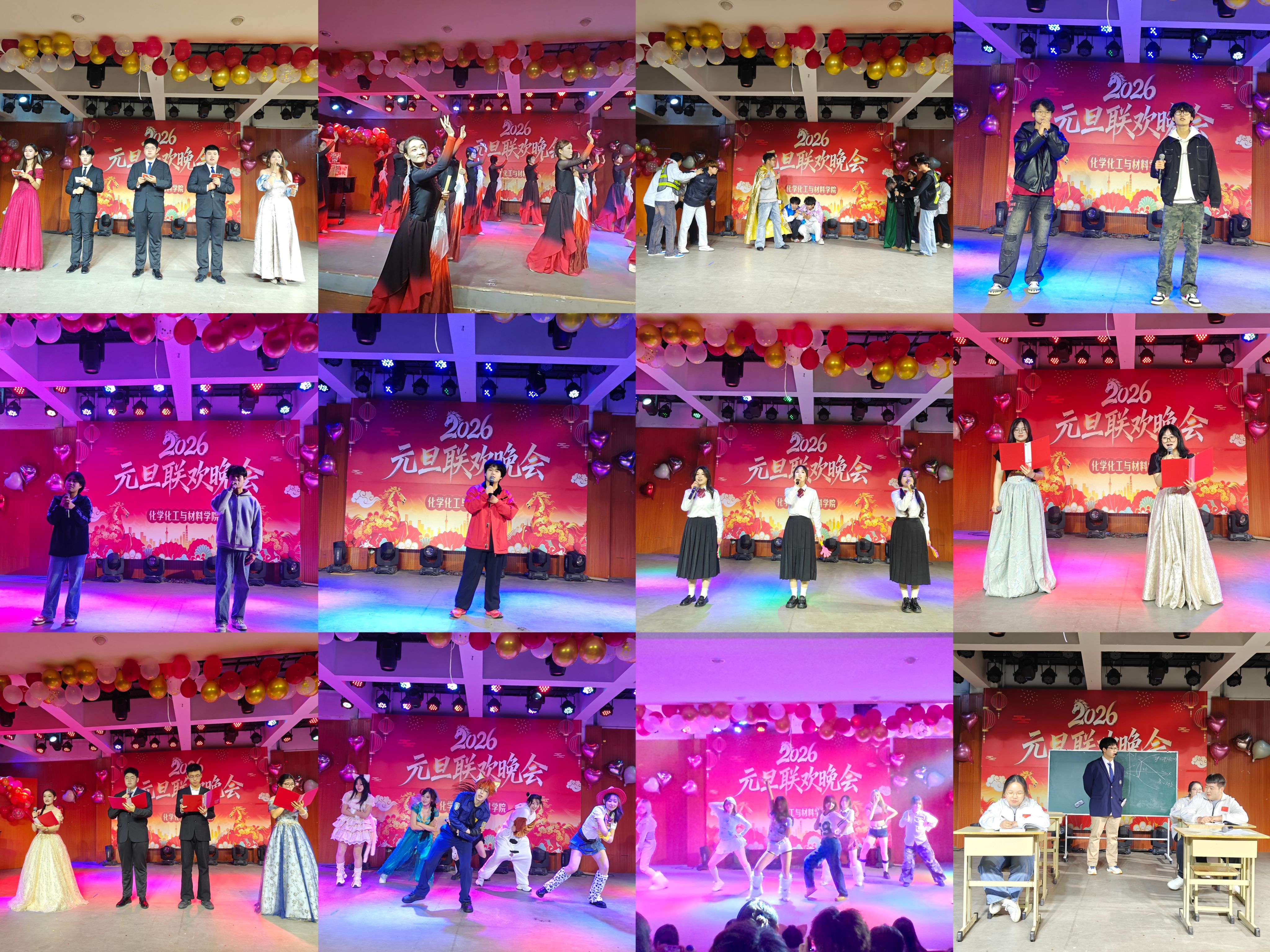“龙腾辞旧岁,骏马启新程”,12月28日晚,化学化工与材料学院举办2026年元旦联欢晚会。学院党委书记马新蕾,团委书记李文婷及辅导员丰雪情、张正弛、田清敏出席晚会,师生欢聚一堂共迎新年。