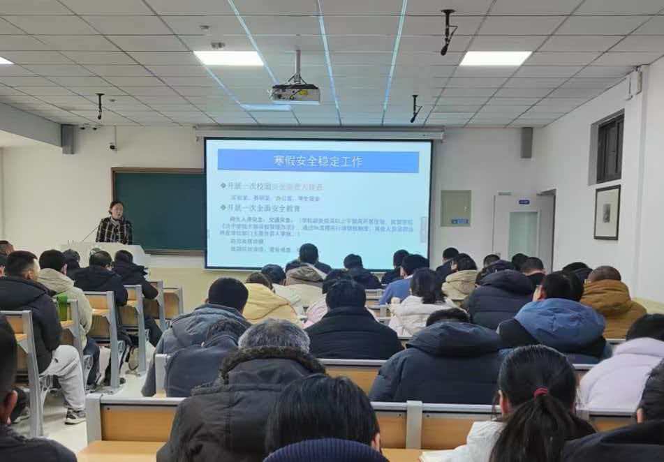 马新蕾强调一要牢固树立安全责任意识,深刻认识寒假期间安全的重要性、特殊性,克服麻痹思想,切实将安全责任落实到岗、到人;二要深入开展安全隐患排查,对实验室、教研室、办公室、学生宿舍等重点场所进行全覆盖检查,做到不留死角、及时整改;三要加强防范电信网络诈骗宣传教育,切实提高识别防范能力;四要严格执行应急值班制度,确保通讯畅通,遇有突发情况及时上报、妥善处置;五要做好学生安全教育和重点学生家访,通过多种形式提醒学生注意人身、交通安全,并引导学生和家长自觉抵制非法宗教活动,共同维护校园和谐稳定。