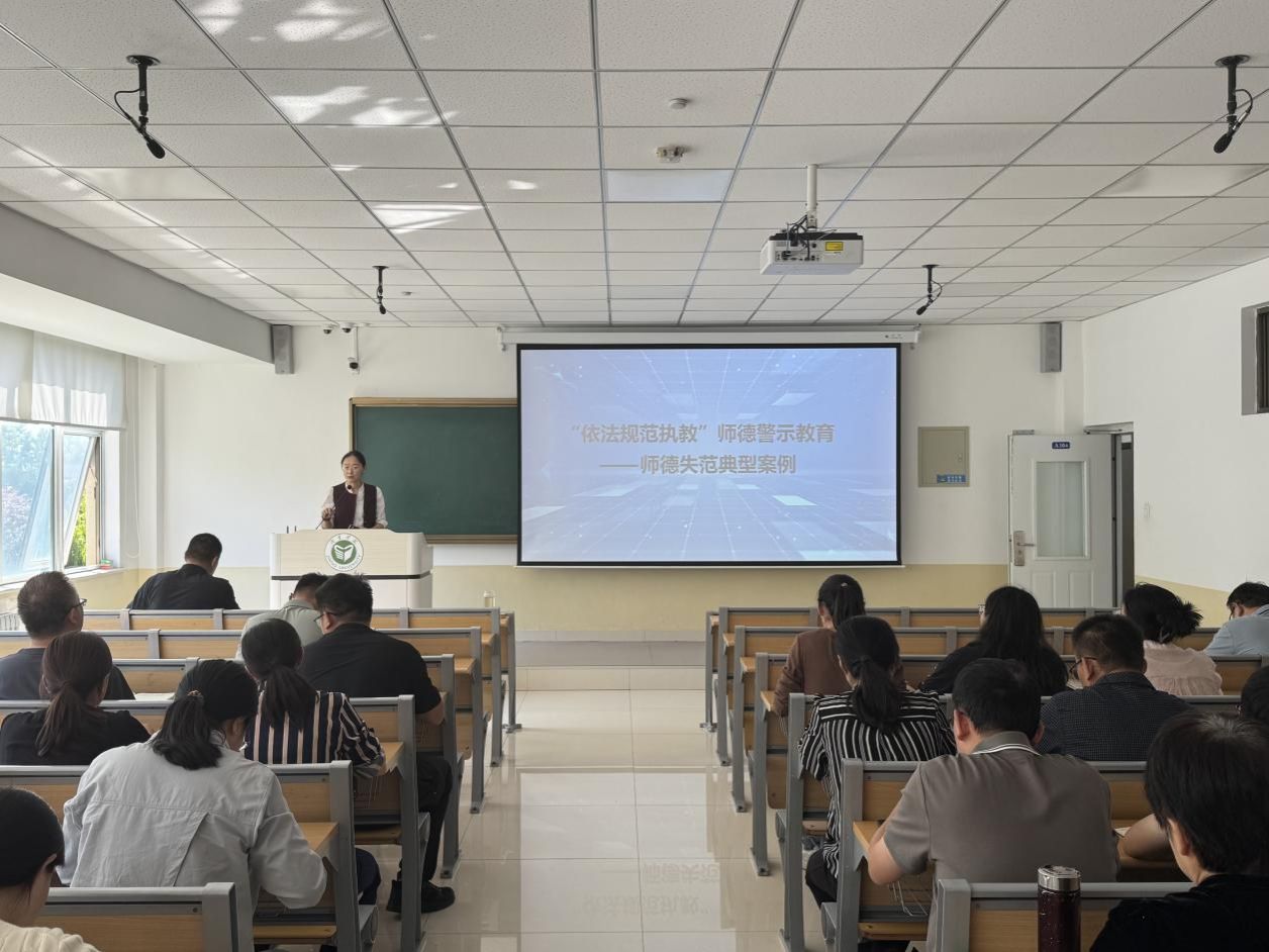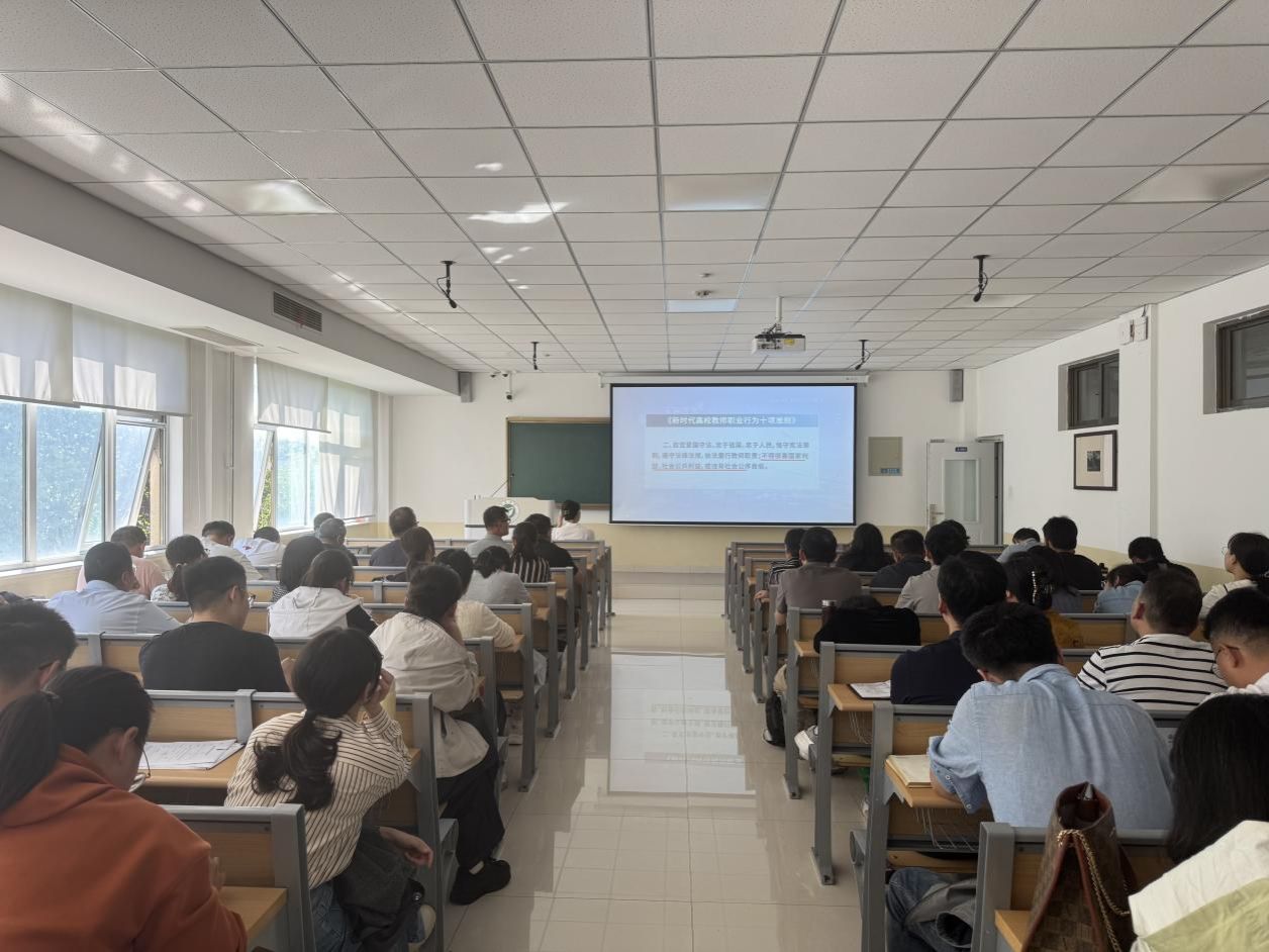 党委书记马新蕾带领全体教师集体学习教育家精神,指出作为高校教师要以教育家精神为指引,始终牢记为党育人、为国育才的职责,涵养师德师风,热爱教育事业,追求教育真理,勇于创新实践,做到“学为人师,行为世范”。