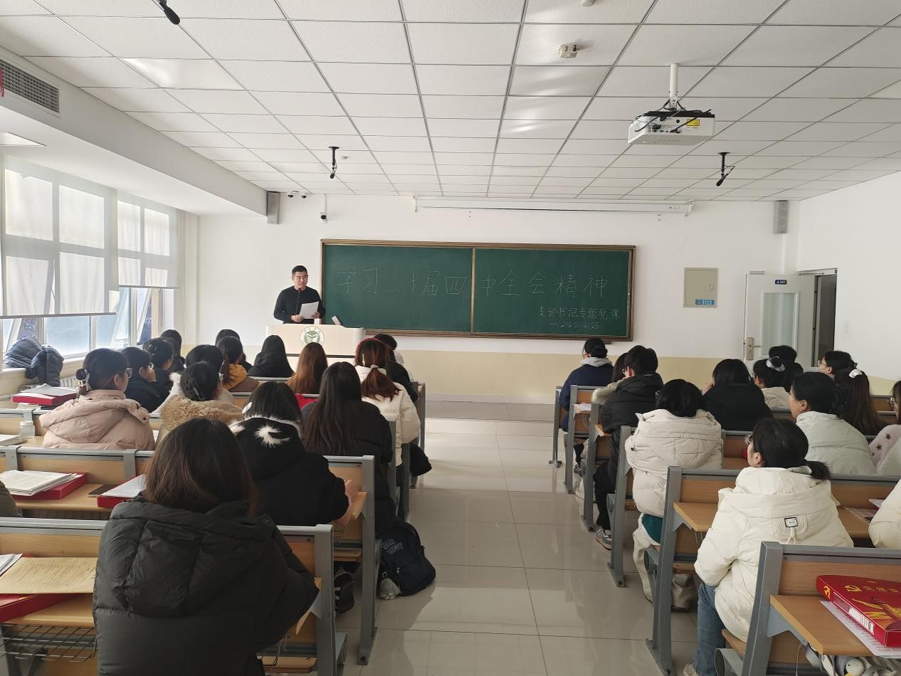 为深入学习贯彻党的二十届四中全会精神,引导师生党员深刻把握全会核心要义与实践要求,将个人理想融入国家发展大局,济宁学院化学化工与材料学院学生第一党支部于12月25日组织开展“学习二十届四中全会精神”专题党课活动,本次党课由党支部书记张正弛主讲,支部全体师生党员参加学习。