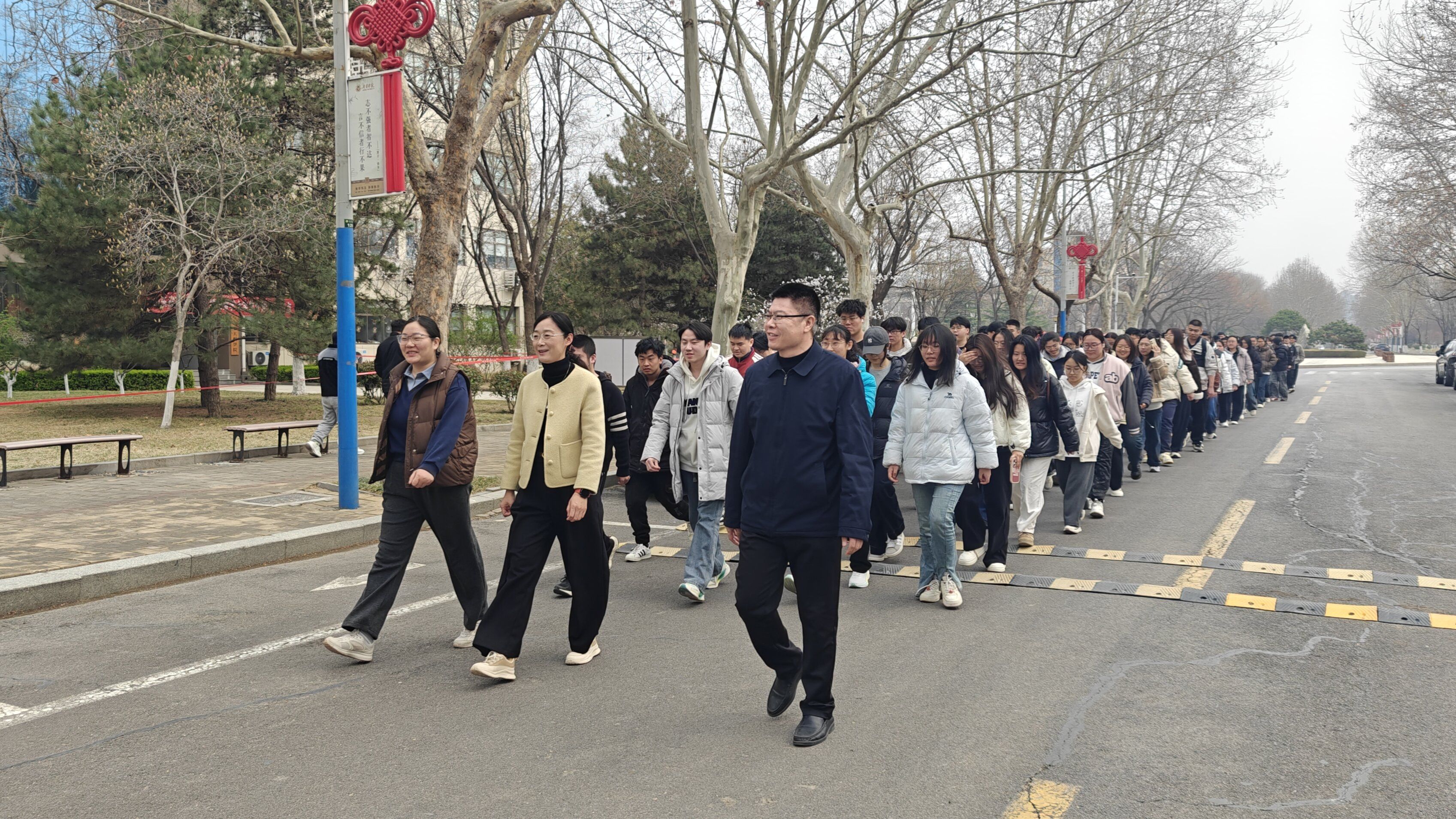 随后,王明锋宣布2026年学生体质健康提升行动正式启动。与会师生共同开启“悦动100”校园健步走活动,迈出体质提升第一步,师生一行沿校园环路行进,在运动中感受乐趣,享受春光。
